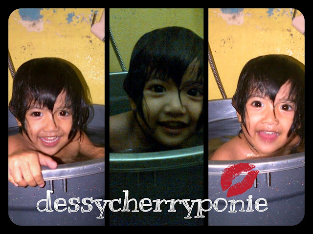 Abaikan kalimat postingan ini yang engga Bahasa Indonesia banget, hehehe. Naeema udah berani sekarang nyemplung. Nyemplung = mencelupkan diri kedalam suatu wadah, wadahnya itu sendiri adalah ember besar yang Unda jadikan wadah untuk menampung air mandi.
